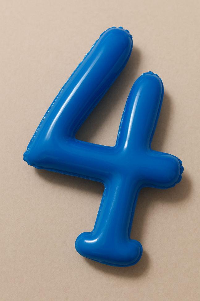 Парти балон, изработен от фолио във формата на цифрата 4 в син цвят.