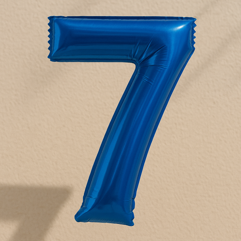 Парти балон, изработен от фолио във формата на цифрата 7 в син цвят.