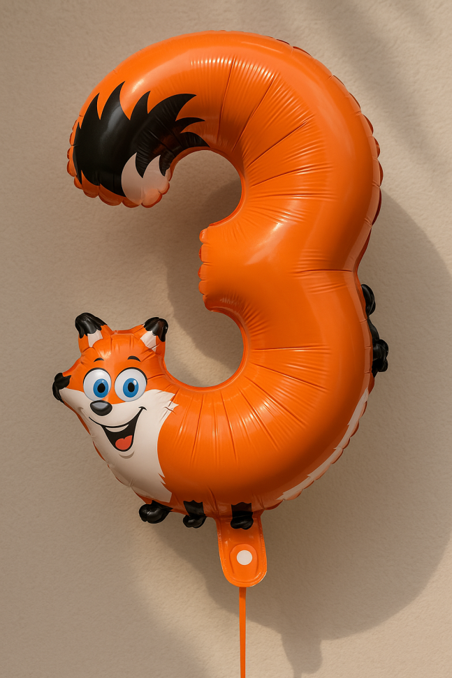 Парти балон цифра 3, изработен от фолио във формата на симпатична лисица.