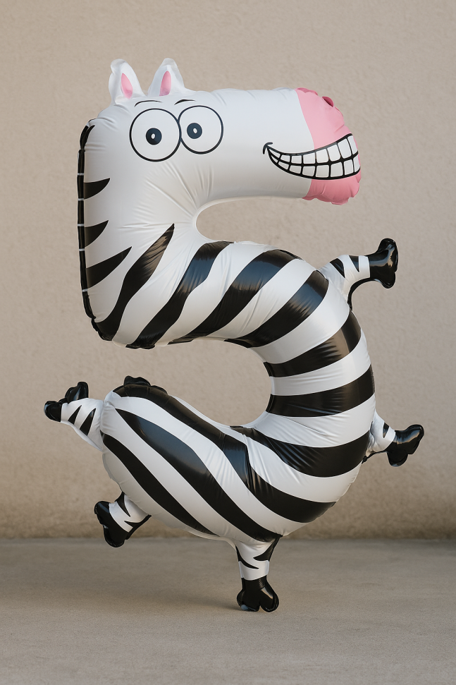 Парти балон - зебра - цифра 5 - 36 х 55 см.