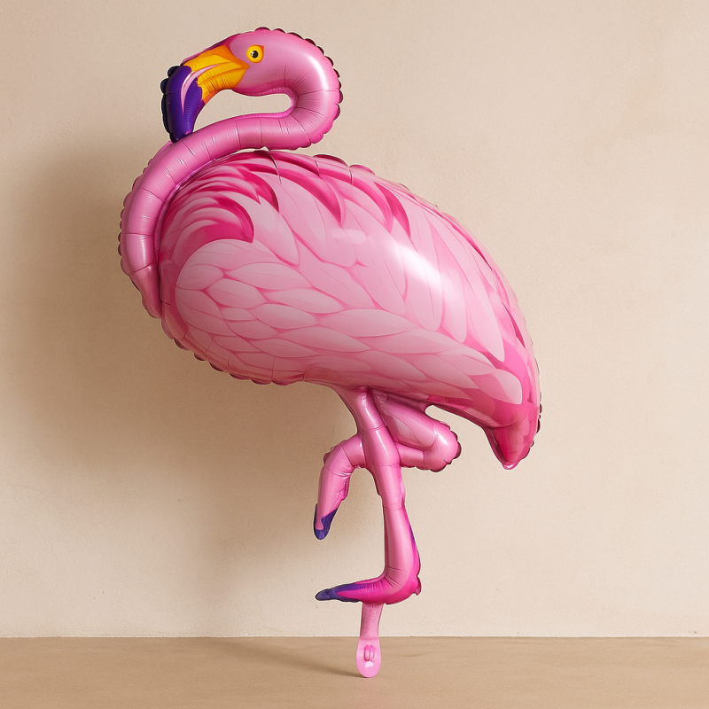Голям парти балон, изработен от фолио във формата на розово фламинго.