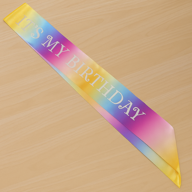 Парти лента в цветовете на дъгата с блестящ надпис в сребрист цвят It's My Birthday.