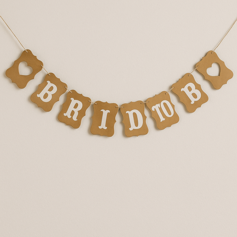 Парти гирлянд с 11 флагчета, изработен от хартия в кафяв цвят с бял надпис Bride to be и сърца.