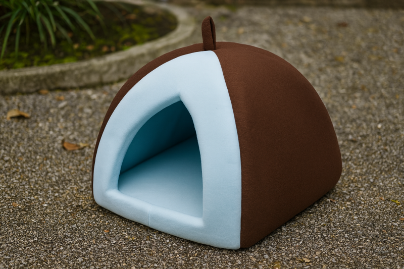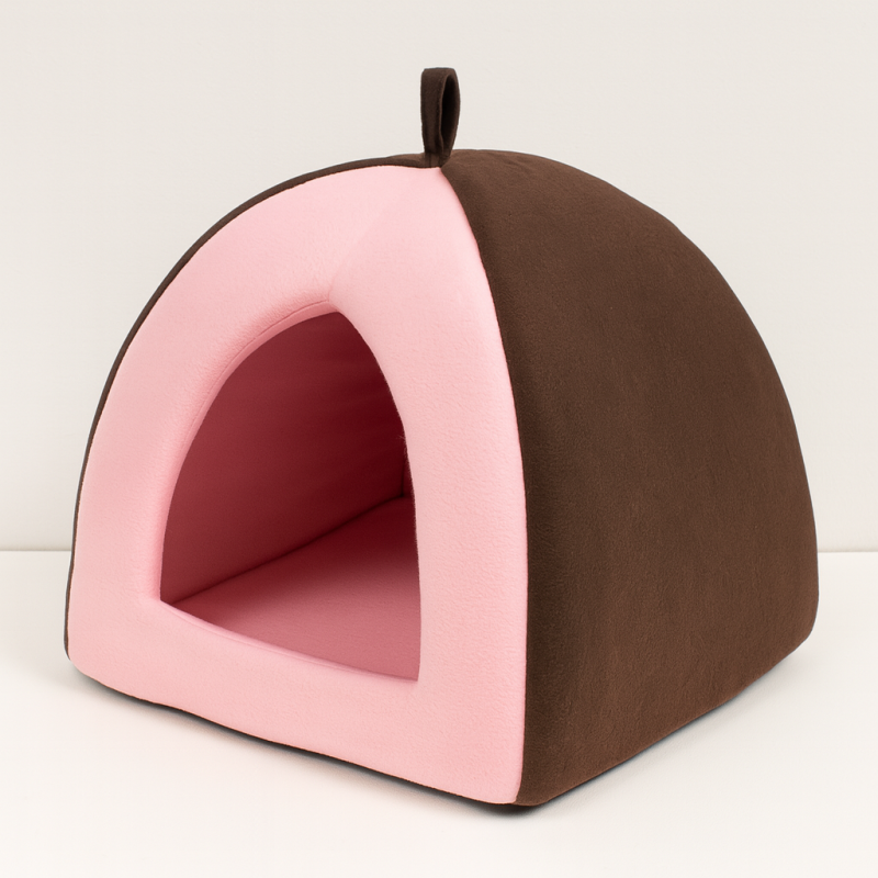 Удобно платнено оригинално легло за домашни любимци - тип къщичка с възглавница вътре.
