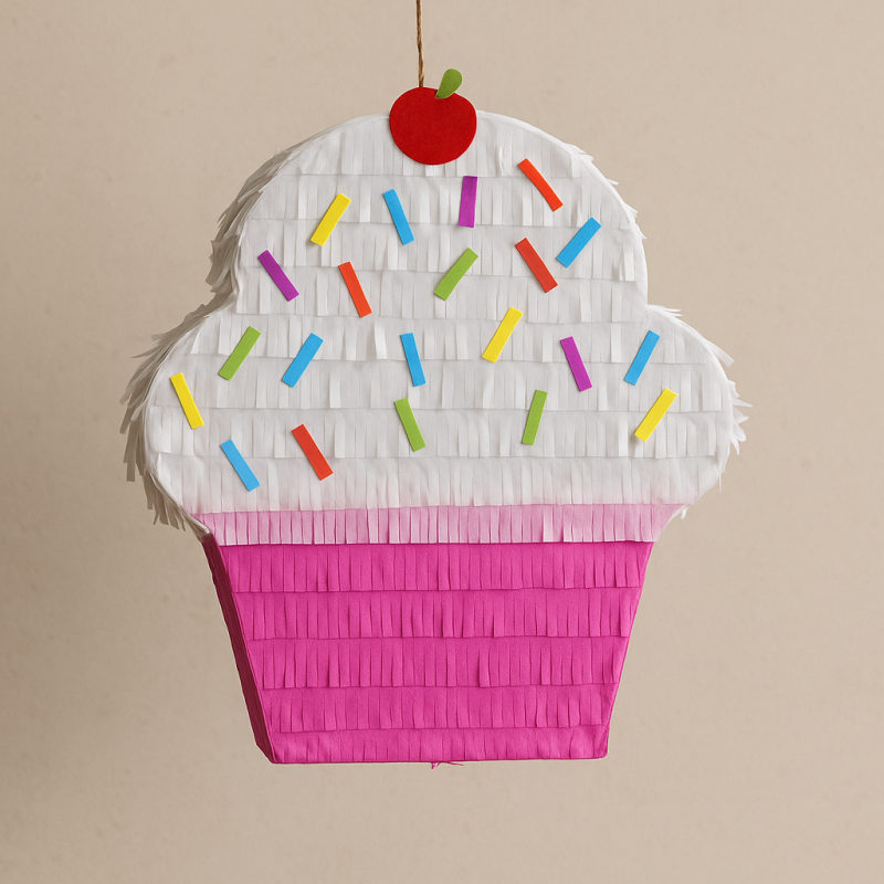Парти аксесоар пинята, изработен от хартия и картон във формата на ягодов мъфин.