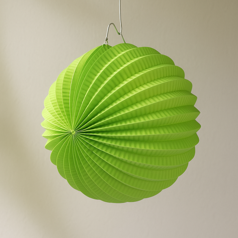 Висяща парти декорация във формата на топка, изработена от хартия в светло зелен цвят с телен корпус, за да стои отворена.