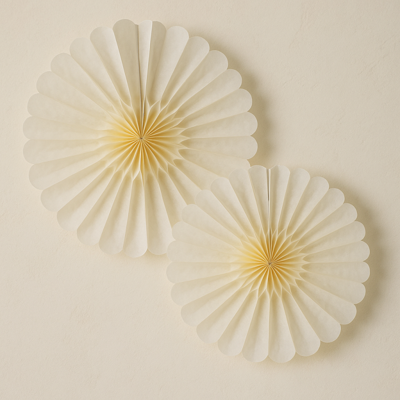 Комплект от 2 броя висящи парти декорации във формата на ветрило, изработени от хартия в цвят екрю.