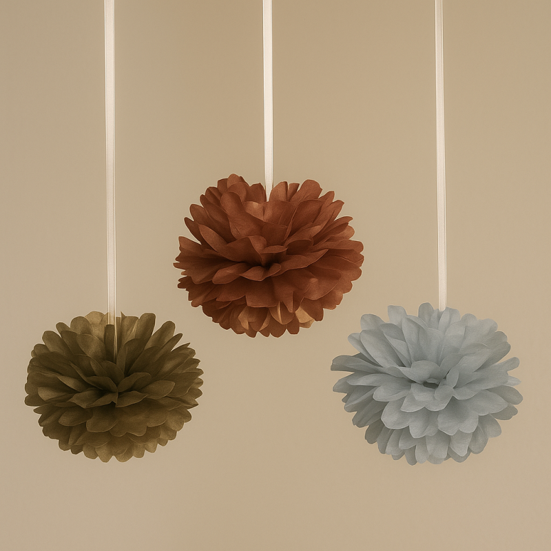 Парти декоративни помпони - злато, сребро, бронз - 3 бр.