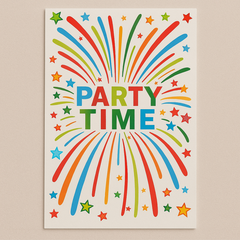 Парти банер за врата, изработен от фолио с разноцветни конфети и надпис PARTY TIME.