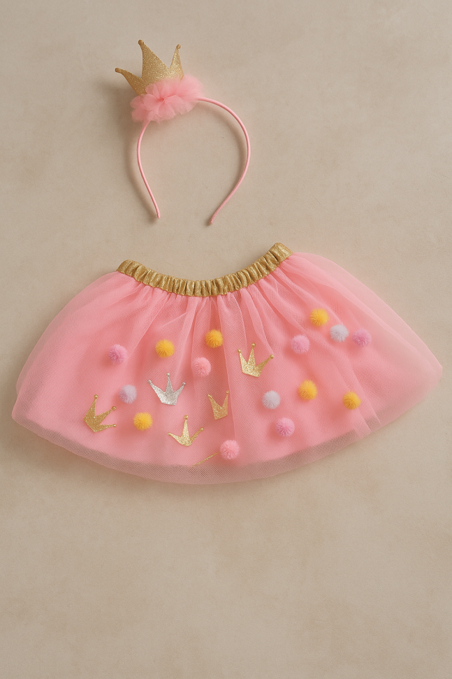 Красив и фееричен костюм на принцеса, включващ поличка и диадема с корона.