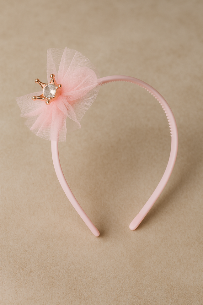 Карнавална диадема с декоративна панделка от тюл в розов цвят и златиста звезда.