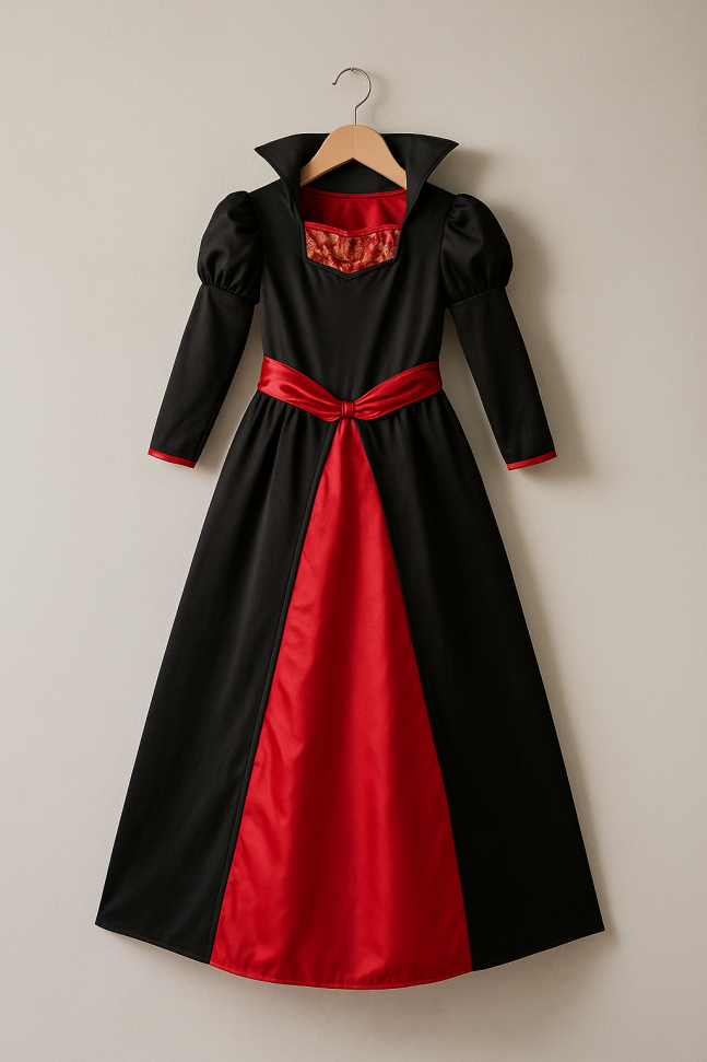 Детски карнавален костюм за момиче - вампир в черно и червено.