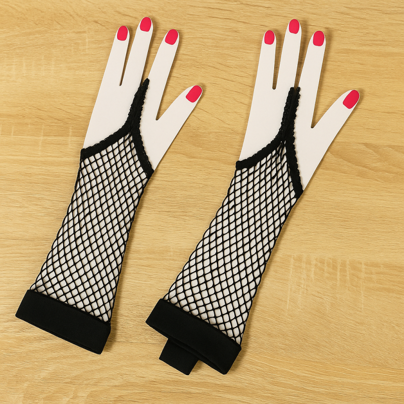 Карнавален аксесоар - мрежести ръкавици без пръсти в черен цвят.