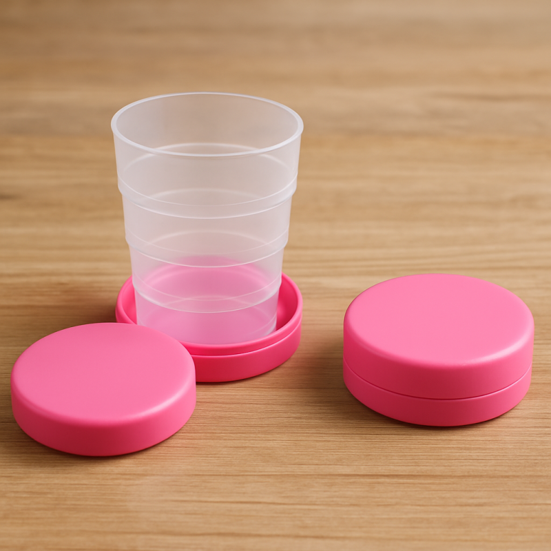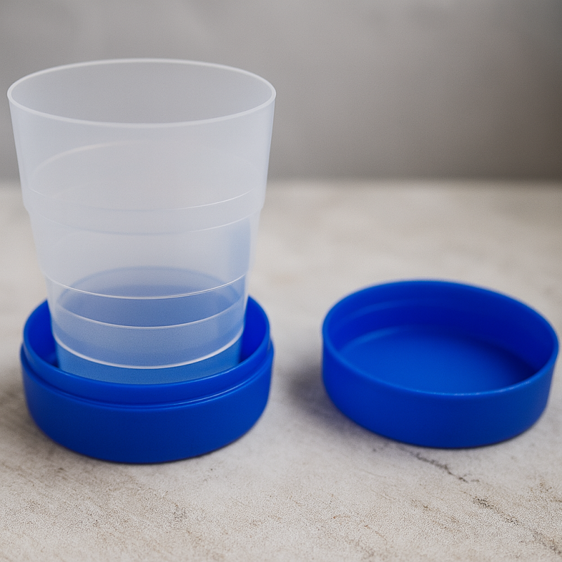 Пластмасова сгъваема чаша с капак за вода и студени напитки.