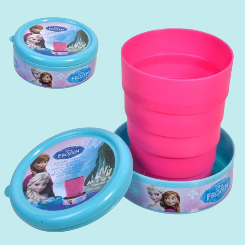 Пластмасова сгъваема чаша за деца с картинка на любимите героини на всяко малко момиченце - Елза и Анна от Замръзналото кралство с капак.