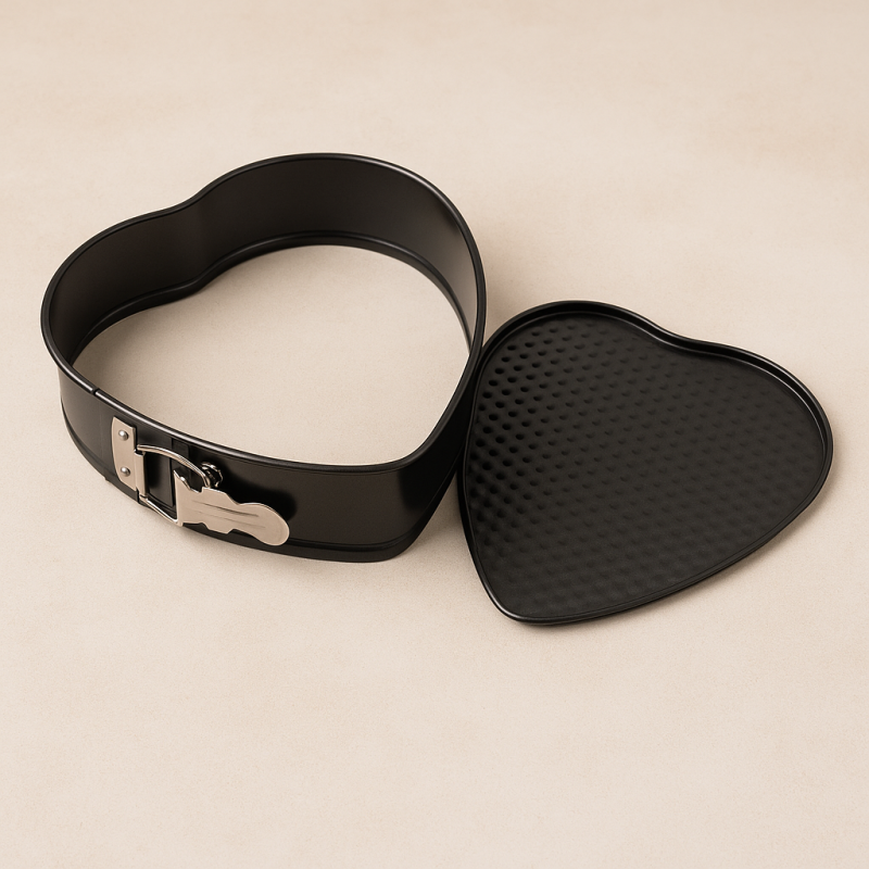 Металната форма за печене във формата на сърце с подвижна основа.