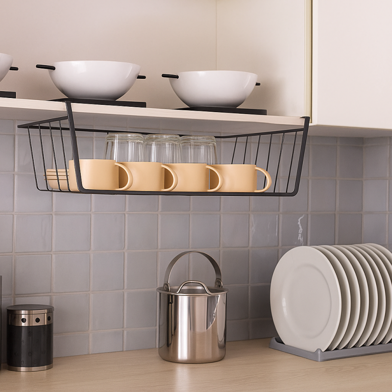 Рафта е изработен от метална, здрава и устойчива конструкция в черен цвят с приблизителни размери на дължина x ширина x височина 40 x 26 x 13 см. Висящия рафт е изключително практично решение за организиране на тесни пространства, като може да го закачите абсолютно навсякъде и да съхранявате с лекота чаши, чинии, домакински уреди, аксесоари и общо взето всичко, което желаете да Ви е на една ръка разстояние.