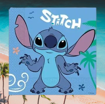 Добавете цвят и настроение към вашето парти с Парти салфетки Лило и Стич! Висококачествени, двуслойни и с весел дизайн, те са идеални за рожден ден или тематично събитие.