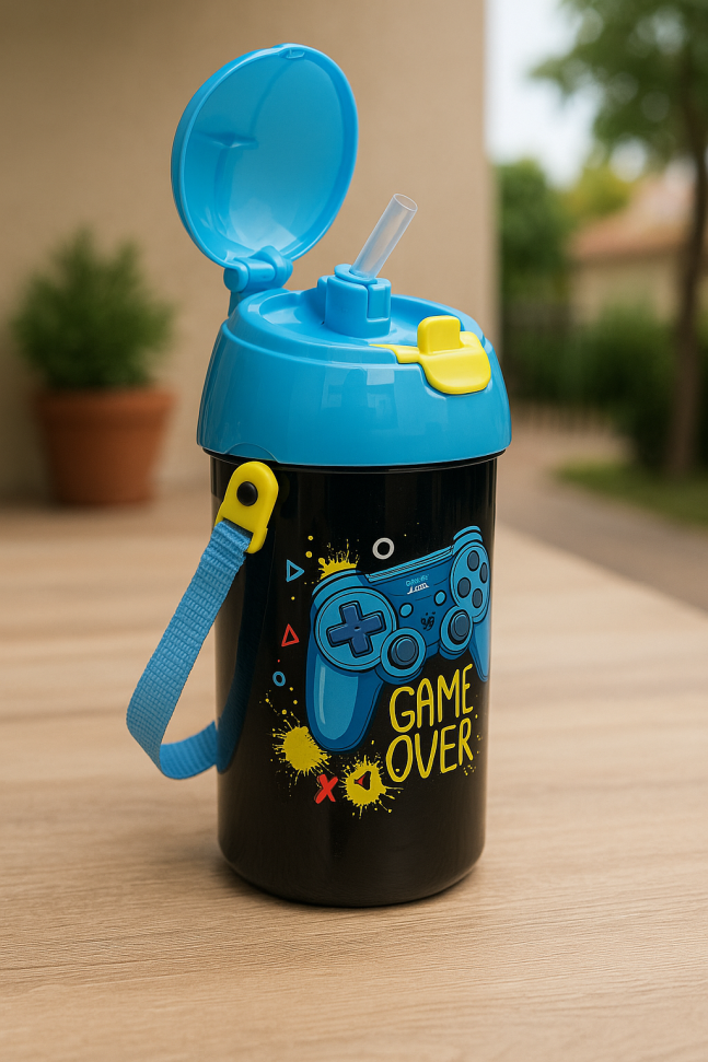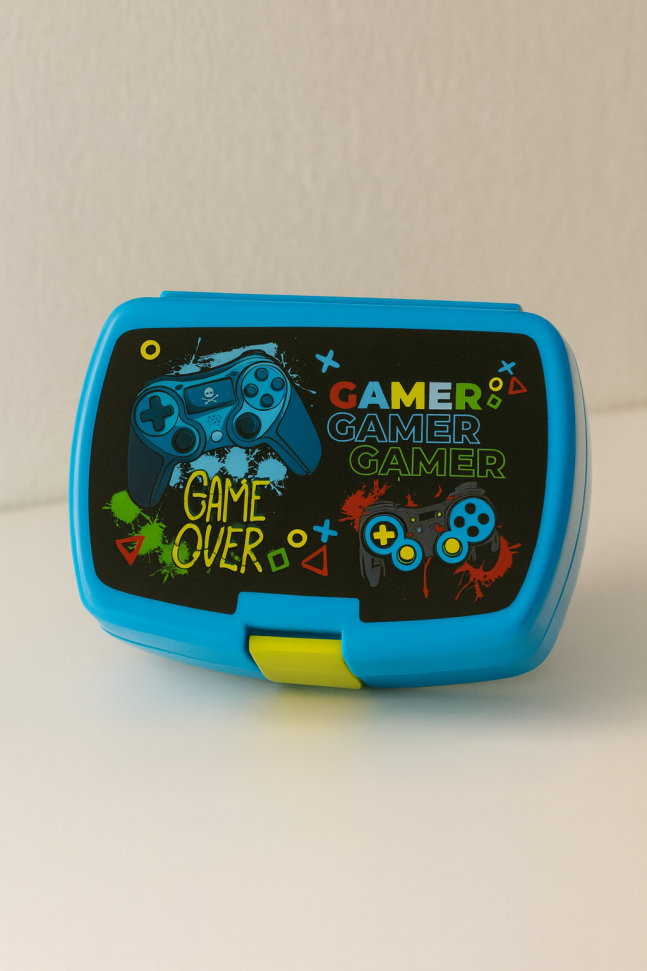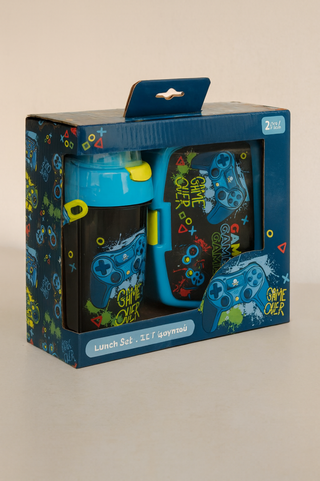 Този Комплект за Училище Gamer е идеалният избор за всяко момче, което обича видео игрите. Включва кутия за обяд с капацитет 750 мл и бутилка за вода 500 мл с модерен дизайн Gamer и атрактивен надпис "Game Over". Комбинацията от синьо и светлосиньо придава свеж и енергичен вид, подходящ за ежедневна употреба в училище, спорт или пътувания.
