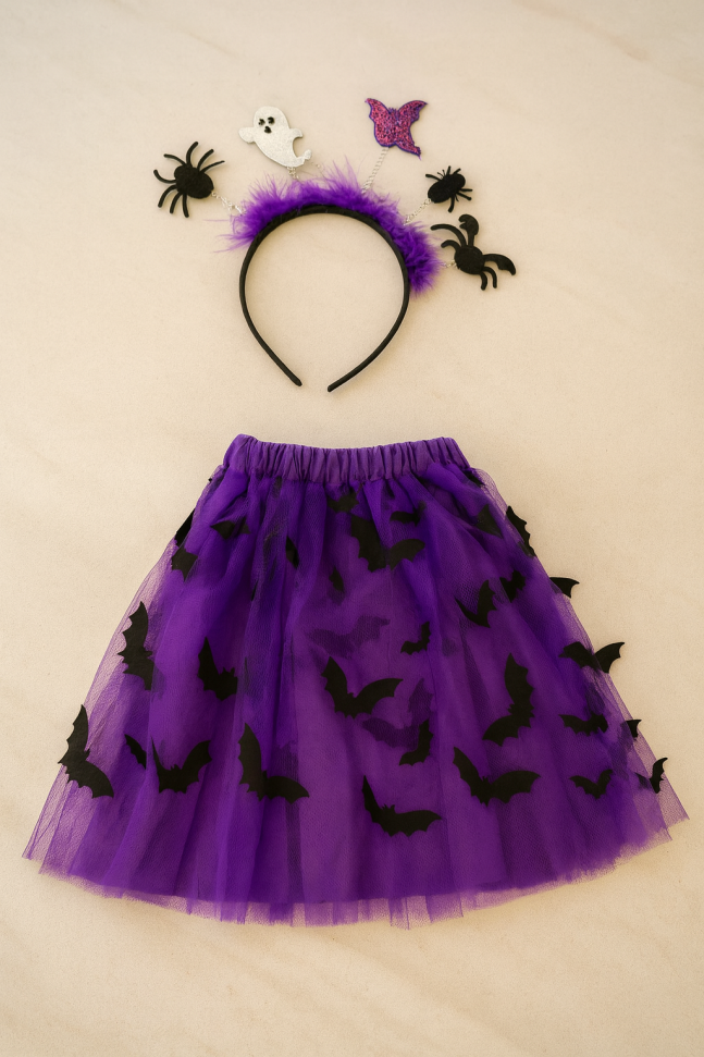 🦇 Очарователен карнавален костюм за момиче – пола и диадема с прилепи
