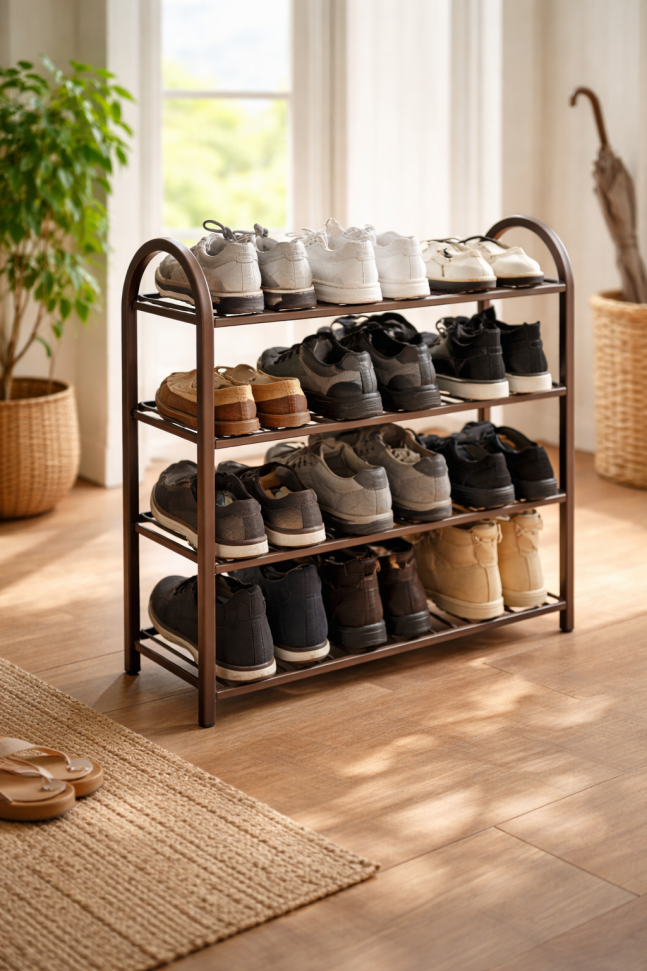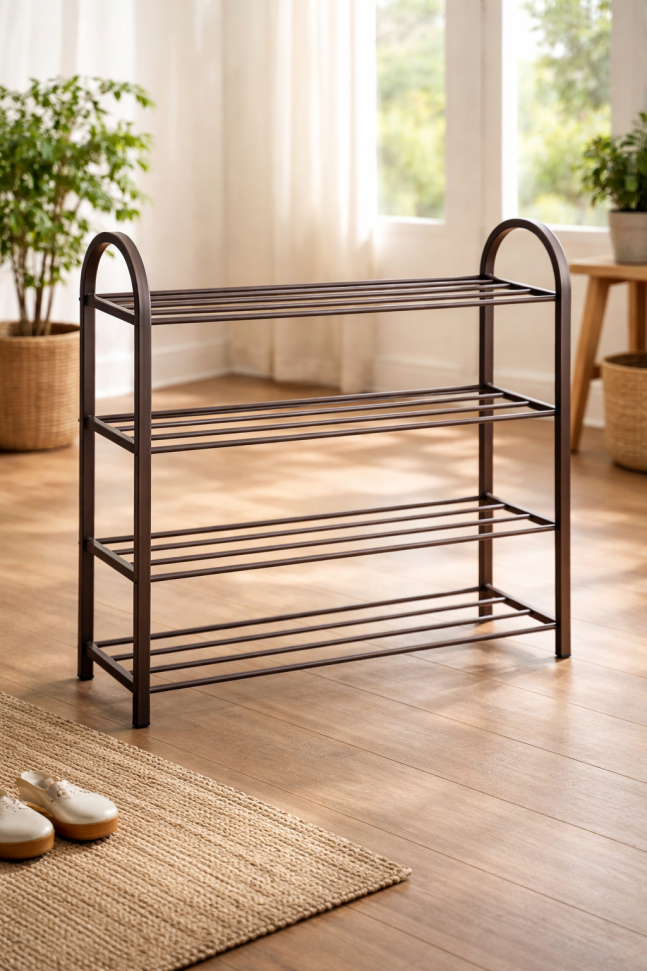 Етажерката за обувки на 4 нива е идеалният избор за всеки, който търси функционалност, компактен дизайн и стабилна конструкция. Изработена от здрави метални тръби, тя осигурява надеждност и дълъг експлоатационен живот, като същевременно заема минимално пространство в коридора, антрето или гардеробната.