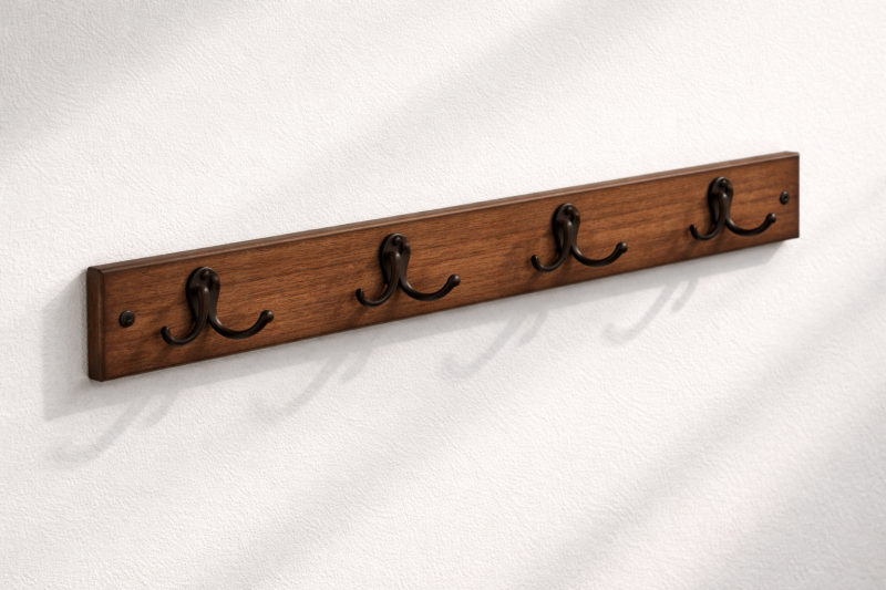 Дървената закачалка за стена с 4 кукички – Орехов цвят е стилно допълнение към всеки интериор, което внася топлина и естествена красота. Финишът в естествен орехов нюанс подчертава текстурата на дървото и я прави отличен избор за антре, спалня, коридор или офис. Дизайнът е семпъл, но елегантен – подходящ както за класически, така и за модерни пространства.