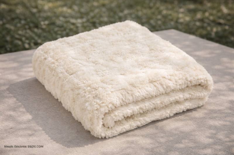 Пухкавата кувертюра за диван или фотьойл в елегантен бял (екрю) цвят е създадена, за да внесе зимна атмосфера, уют и комфорт във всеки хол. Нейният нежен външен вид и релефен десен с точки я правят не само практична, но и стилен декоративен акцент за интериора.