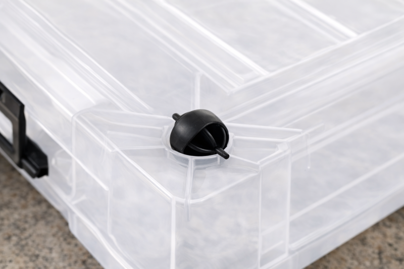 Кутията е снабдена с практичен капак и стабилни дръжки, които улесняват пренасянето и изваждането ѝ. Пластмасовият материал е лек, здрав и лесен за почистване, което я прави подходяща за ежедневна употреба. Капакът предпазва съдържанието от прах и замърсявания, като осигурява по-добра защита на вещите ви.