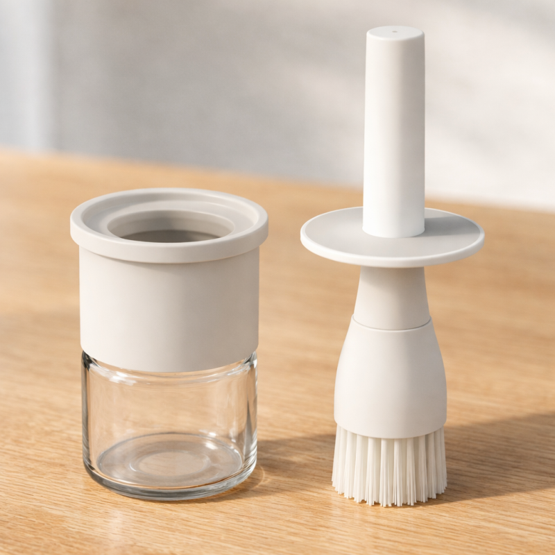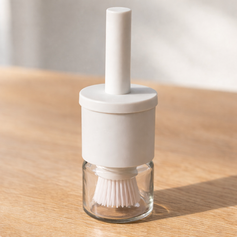 Стъклена бутилка за зехтин със силиконова четка 250 мл.