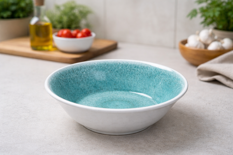 Купата за салата от меламин с вместимост 1.85 л е създадена, за да внесе свежест и цвят във вашата трапеза. Нейният кръгъл scallop дизайн придава елегантен и модерен акцент, а наситеният тюркоазен цвят създава усещане за лято и лекота. Подходяща е както за ежедневна употреба, така и за стилно сервиране при гости и специални поводи.