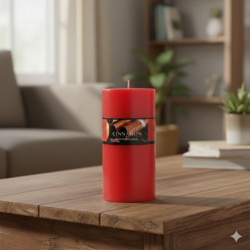 Ароматна свещ в червен цвят с аромат на канела.