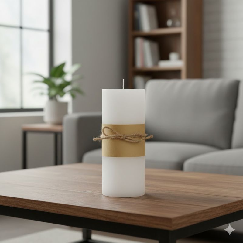 Ароматна свещ тип колона в бял цвят с аромат на жасмин, изработена от висококачествен парафин.