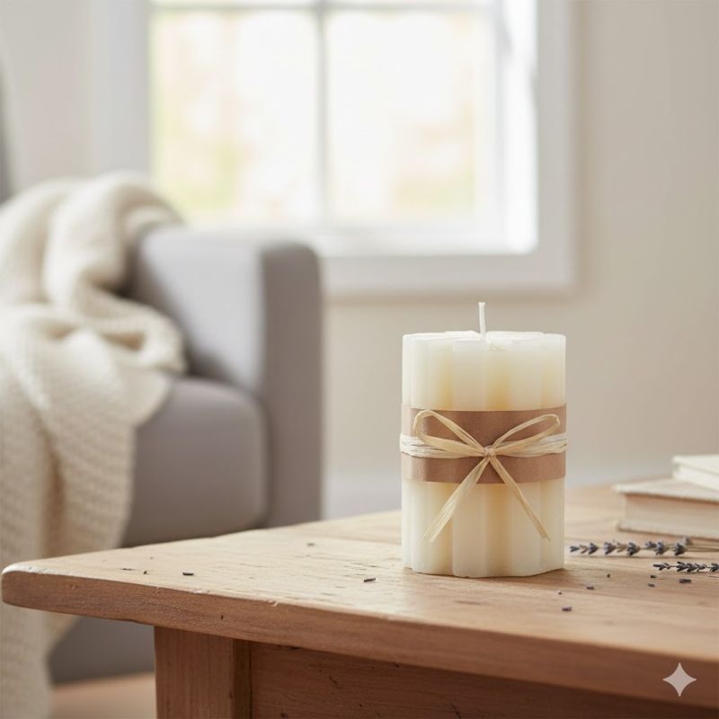 Декоративна свещ в цвят слонова кост във формата на цвете, изработена от висококачествен парафин.