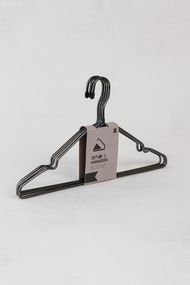 Комплект от 6 броя класически закачалки, изработени от високачествена метална сплав в черен цвят.