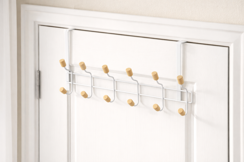 Елегантна закачалка за врати с дебелина 4.5 см., изработена от висококачествена метална сплав в бял цвят.